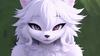 白色毛皮覆盖的娃娃在 POV 无尽视频中轨道一个男人